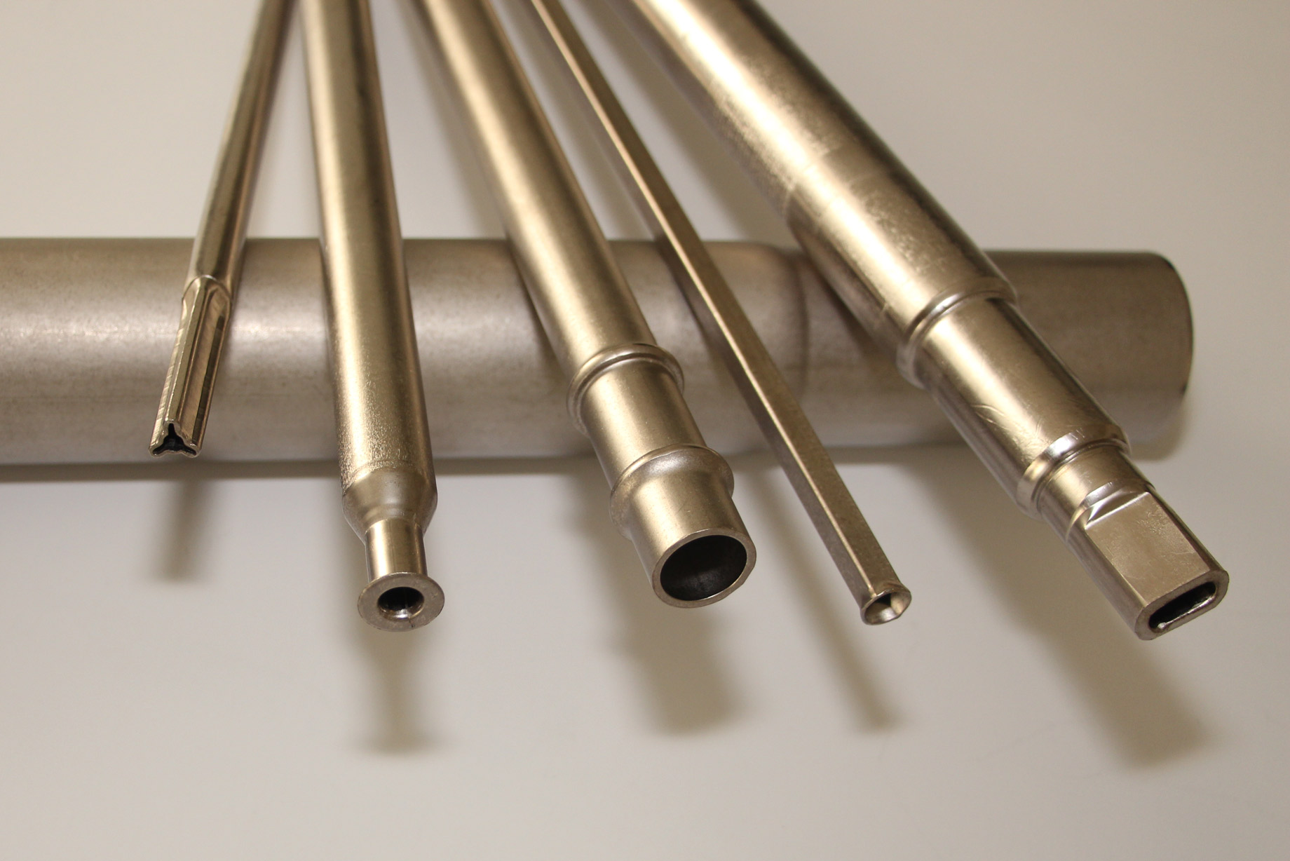 All production steps of a long metal component from raw material (e.g., wire or tube) to the finished product can be completed in a single machine.